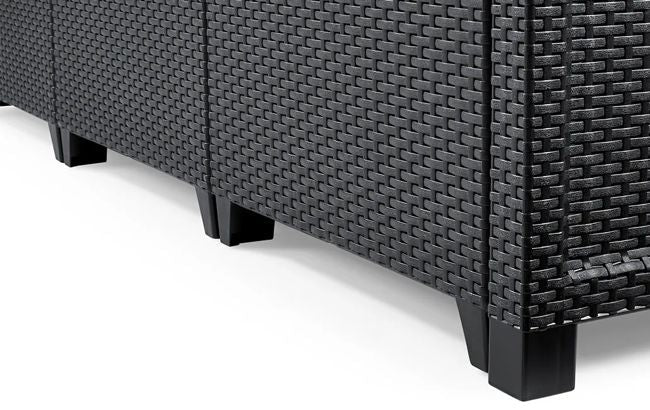 – Sleek and sophisticated garden furniture with a rattan – style flat weave that is tough, durable and low maintenance