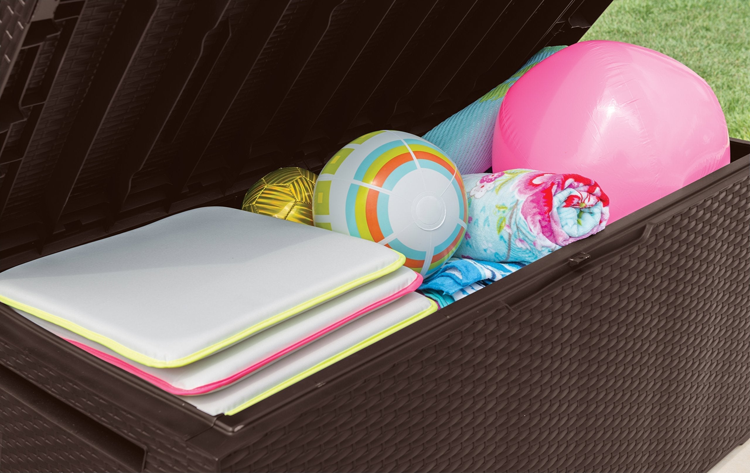 - Ideal outdoor storage box for garden tools and equipment, furniture cushions, garden games and accessories