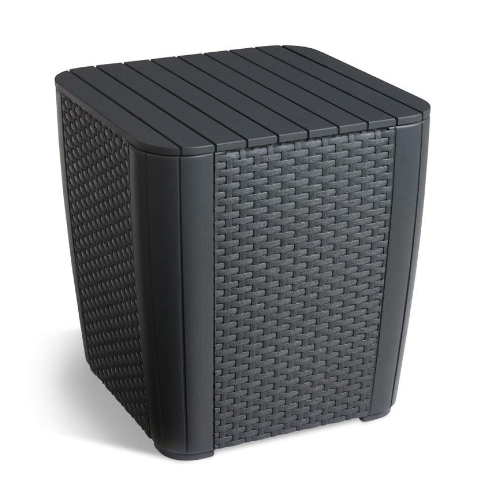 Keter Iowa 3-Piece Rattan Effect Storage Table Balcony Bistro Set – Graphite