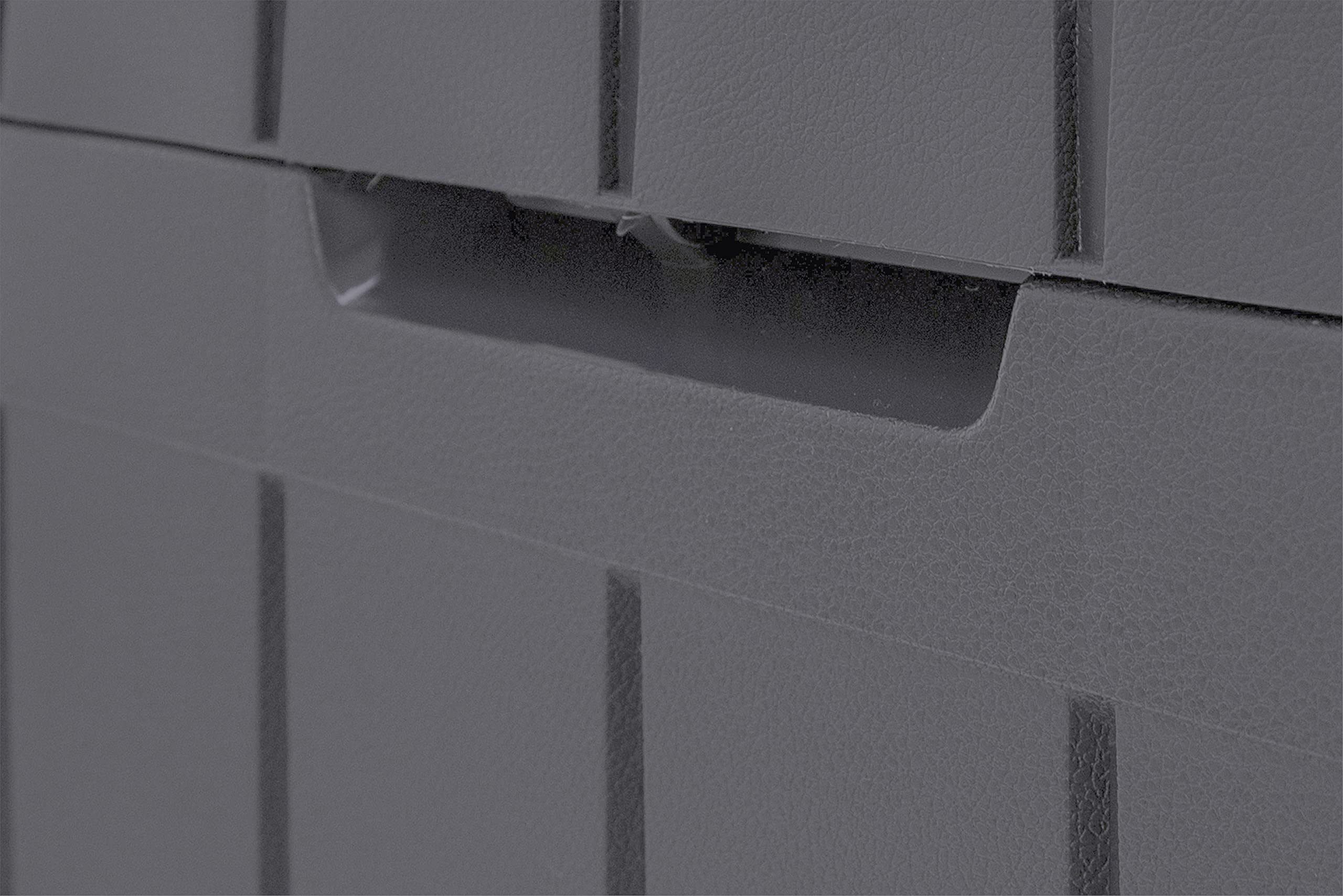 Keter Marvel+ 270L Outdoor 65% recycled Garden Furniture Storage Box Graphite Wood Panel Effect | Fade Free | All Weather Resistant | Safe and Secure | Zero Maintenance | 2 year Warranty