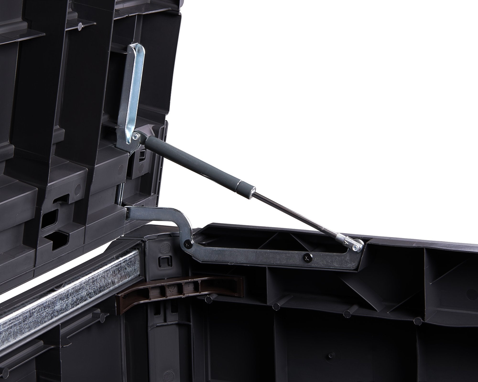 - It is of high quality and sturdy. For stability, the box was reinforced with metal, practical gas pressure springs, which raise the lid almost by itself. The high quality plastic is UV-resistant and weatherproof and therefore suitable for year-round outdoor use. It can even stay out in winter. It is virtually maintenance-free and there is no painting or sanding needed.