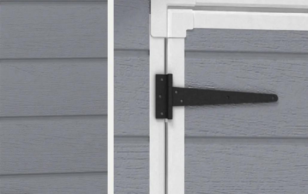The roomy Manor 6×8 shed makes organizing your outdoor space easy and attractive.Made of innovative lightweight panels “H” shaped, double- wall structure constructed to provide extra strength to withstand heavy duty weather and are built to last.The Manor 6×8 is a maintenance- free shed, no varnish or paint is needed. It features wide double doors for easy access, integral floor panel and ventilation that keeps your stored items clean and dry, a fixed window for lots of natural light, a ceiling that is high enough to let you move around with ease and is lockable for extra safety and secure.