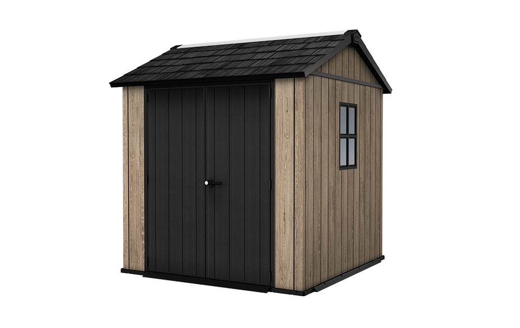 The compact Apex 7×7.5ft storage shed from Keter’s Signature collection is a versatile addition to your outdoor living space. Its light, bright wooden hues effortlessly elevate any outdoor area, offering a sophisticated look that goes beyond the ordinary. The realistic wood-look walls are crafted from our innovative, cutting-edge composite material, ensuring they won’t chip, peel, flake, rot, or sustain water damage. Completely maintenance-free and weather-resistant, this shed stands the test of time.