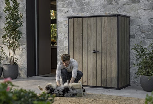 At long last, your outdoor storage comes with stylish looks. The Vertical Shed, part of Keter’s Signature Collection, is a fine-looking addition to any outdoor space. Light, bright hues of wood adorn the exterior walls, while inside is 1400L of storage space for all your tall outdoor items such as rakes, shovels, ladders, and more. Two shelving units will keep items neatly stored and double lockable doors will keep them safe. Assembly is easy, and since the walls are made of an innovative material that won’t rust, dent, or peel, this shed is weather resistant and maintenance free. It is a practical and attractive addition to any garden, patio, or spacious apartment balcony. Get ready to transform your outdoor space to something beyond the ordinary with the Signature 1400L Vertical Shed.