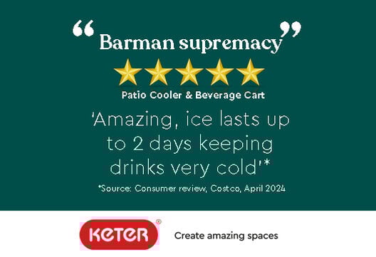 Introducing the perfect addition to any outdoor gathering, the Keter Patio Cooler and Beverage Cart made with DecoCoat technology. This unique and premium design serves as an eye-catching centrepiece, elevating any outdoor space with its real Ashwood hues and intricate grain details. The DecoCoat panels offer a classy wood look, while the weather-resistant frame boasts a distinctive cast-iron appearance, requiring no maintenance. The Patio Cooler is host-friendly, featuring fold-up 15kg capacity side shelves, a fold-down narrow shelf, a movable cooler bin divider/tray, and ample lower-shelf storage. Practical touches include a drainage system, built-in bottle opener, and 360 swivelling wheels for complete manoeuvrability and easy-to-use wheel locks. With these features, this beverage cart does not only impress guests but also simplifies hosting duties, making every gathering enjoyable and memorable.