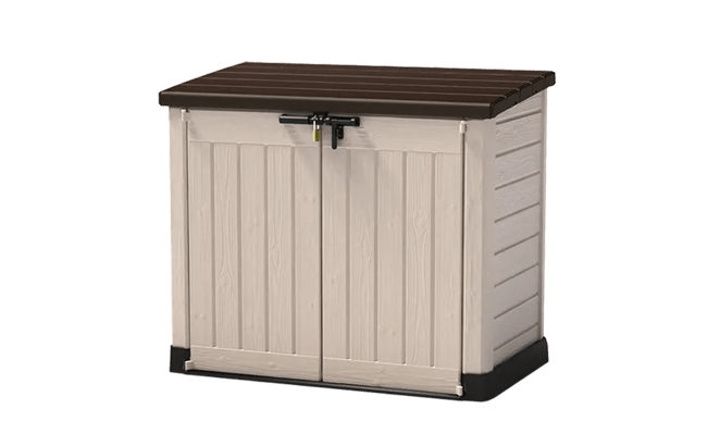 Easy to assemble and easy to use, the global best-selling Store-It-Out MAX provides an ideal outdoor storage solution for everything from barbecues to outdoor furniture. Amazingly compact and versatile, this weather-resistant storage unit will keep up to 1200 L/42 cu.ft. of contents fresh and dry. For your convenience, it features front and top opening, a sloped threshold and bin-opening kit.