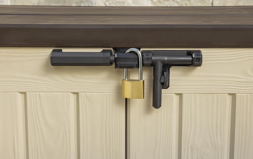 - Ideal outdoor storage solution for garden tools, equipment and x2 240 L wheelie bins